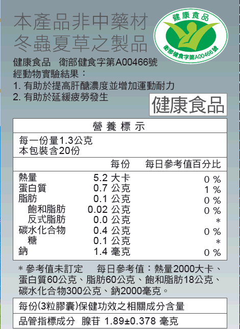 ■健康食品衛部健食字第A00466號